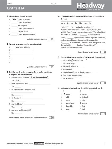 Download new headway elementary fourth edition test unit3 Kindle Editon